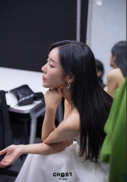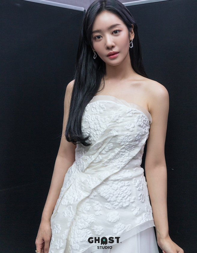 차주영은 화이트 컬러 오프숄더 드레스를 착용하고 긴 생머리를 늘어뜨렸는데요.
