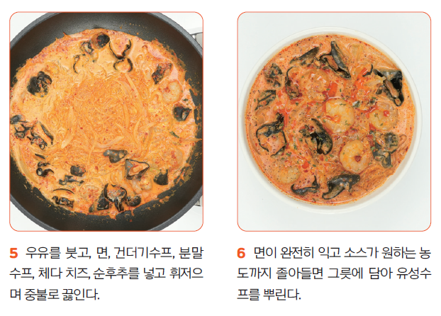 ▶ 체다 치즈는 반 장만 넣는 게 가장 적당하지만 더 꾸덕한 맛을 원하면 한 장 다 넣어도 괜찮아요.