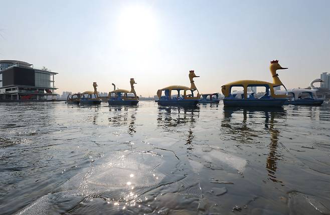 | ▲ 한파가 이어지고 있는 1월 23일 서울 뚝섬한강공원 선착장에 강물이 얼어 있다. 2026.1.23 |