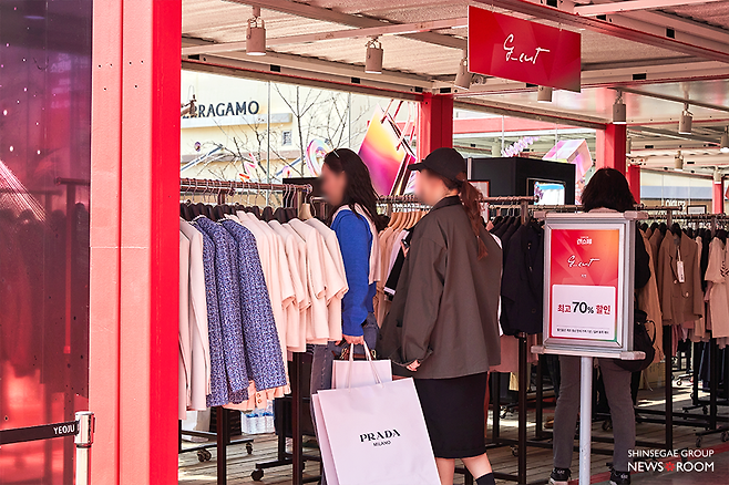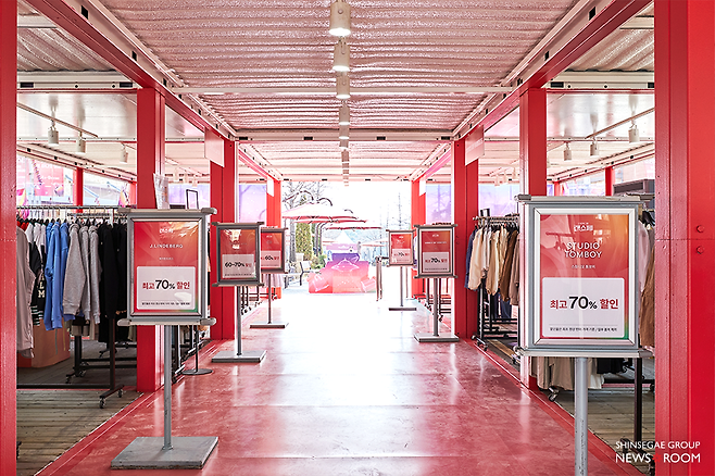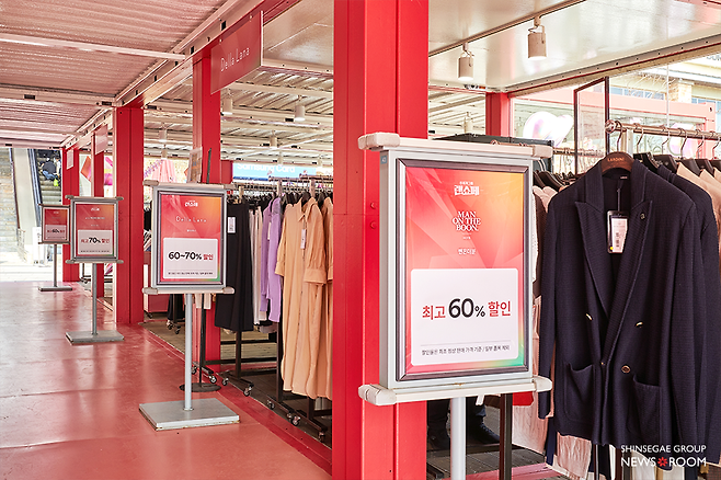 아울렛의 메인 이벤트가 펼쳐지는 EAST 광장에 들어서자, 가장 먼저 시선을 끈 건 ‘클리어런스 빌리지’ 팝업스토어였다. 규모와 열기로 보나, 신세계그룹이 공들인 대형 프로모션이라는 인상이 단번에 전해졌다. 각 브랜드 매대 앞엔 옷걸이를 넘기며 할인율을 확인하는 고객들의 발길이 분주했다.