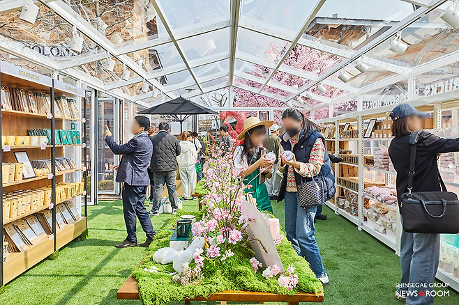 행사장 한쪽에 마련된 블라썸 포토존은 만개한 벚꽃을 배경으로 쇼핑백을 든 사람들의 인증샷이 끊이지 않는 인기 스팟이었다. 상품을 고르고 계산하는 틈틈이, 방문객들은 이곳에서 짧게나마 봄 분위기를 즐기며 여유를 누렸다.