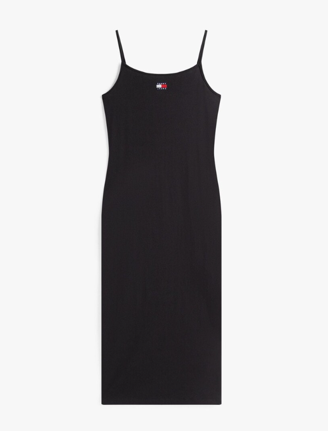 장원영이 선택한 원피스는 TOMMY JEANS의 'TJW STRAPPY BADGE RIB MIDI DRE'로, 해외 구매가 기준 약 14만원대에 형성된 제품이다.