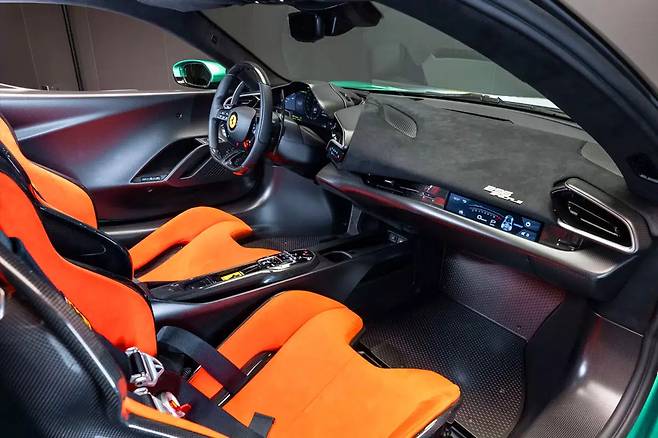 내부는 알칸타라와 탄소소재로 구성돼 무게를 줄이면서도 시각적 고급스러움은 유지했다.