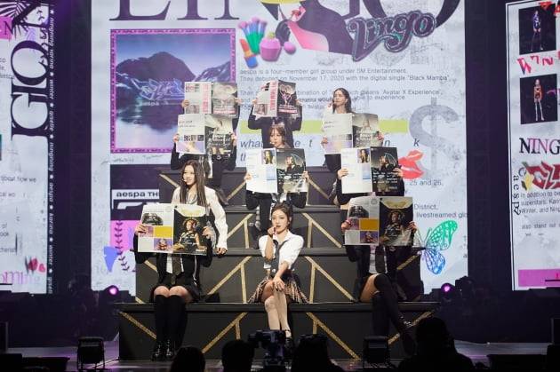 공연의 백미는 '메타버스 걸그룹'이라는 팀의 정체성을 느낄 수 있는 무대 연출이었다. 시작부터 무대 중앙 스크린을 통해 '아이-에스파'가 나타났고, 이어 스크린이 열리며 실제 멤버들이 등장해 팬들을 열광케 했다.