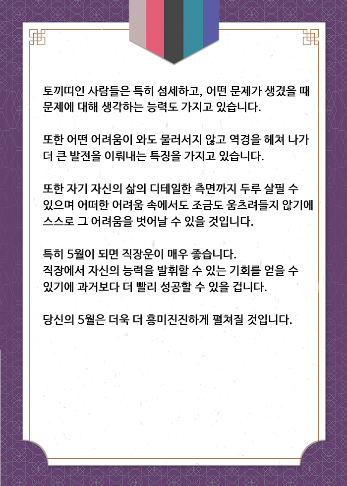 다가오는 5월 당신에게 새로운 변화가 생길 수 있습니다.