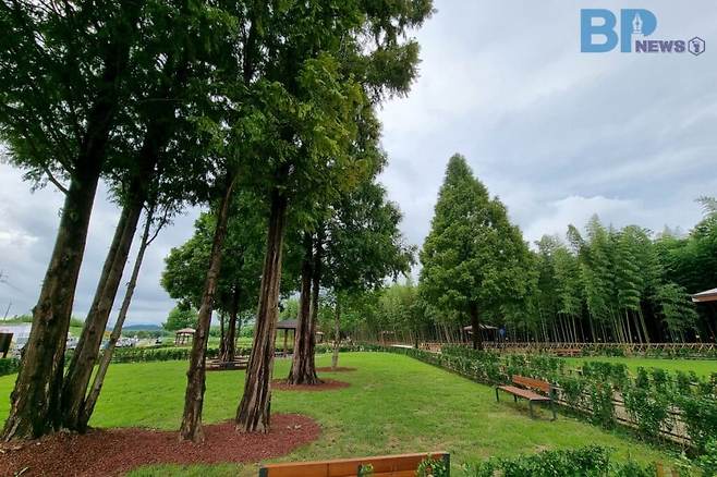 산책하기 좋게 펼쳐진 대나무 밭과 대나무 밑에서 돌아가는 바람개비는 청량한 초여름의 산책로 풍경을 더해준다.