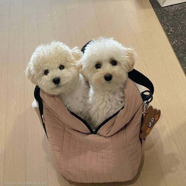 말티푸 두부와 푸숑 두리는 2달 차이 나는 남매지간이다.