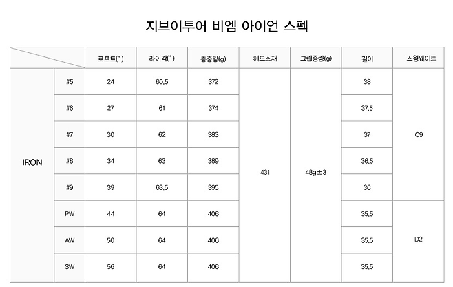 아이언 상세스펙