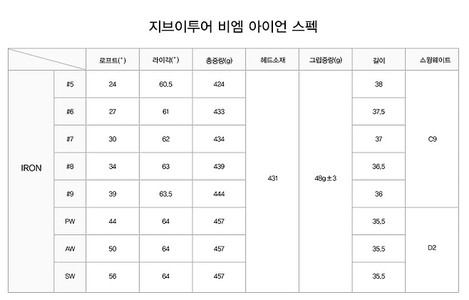 아이언[#5, #6, #7, #8, #9, PW, AW, SW]