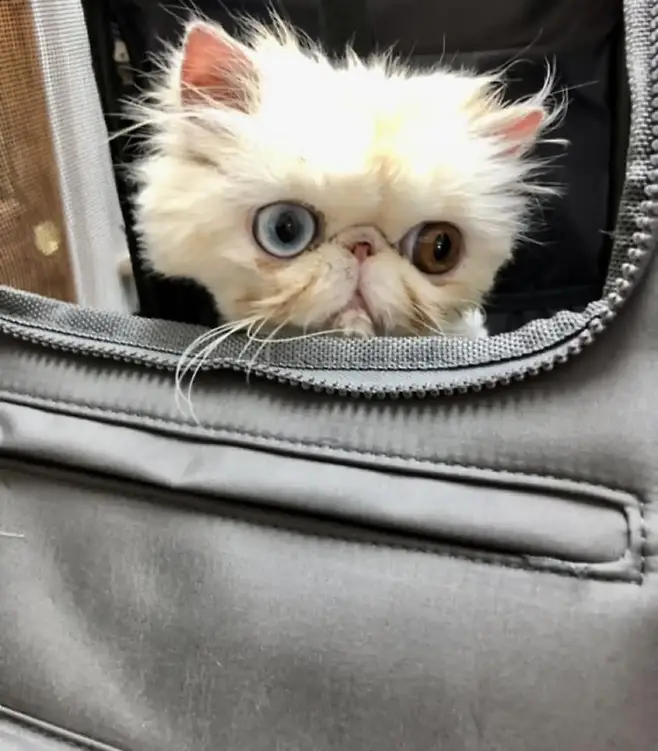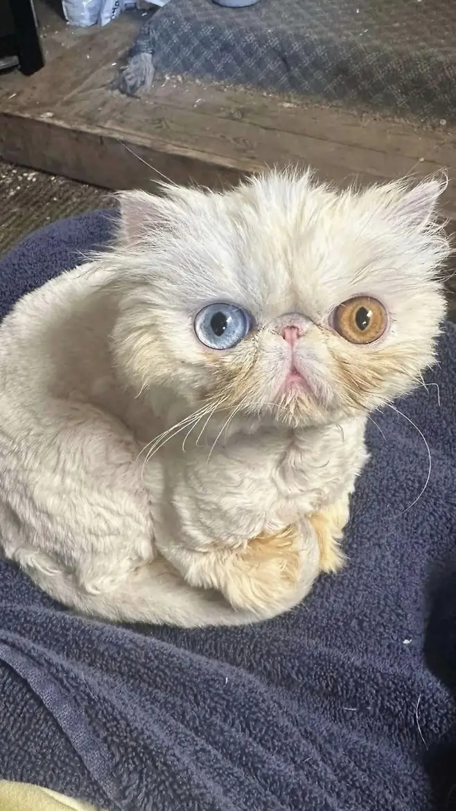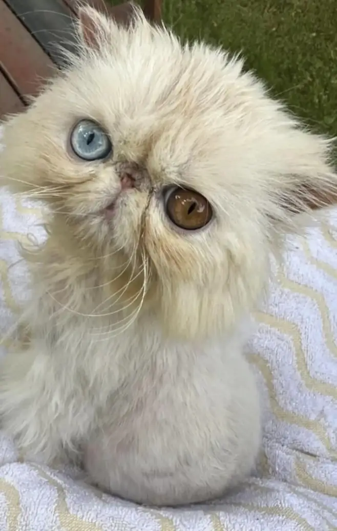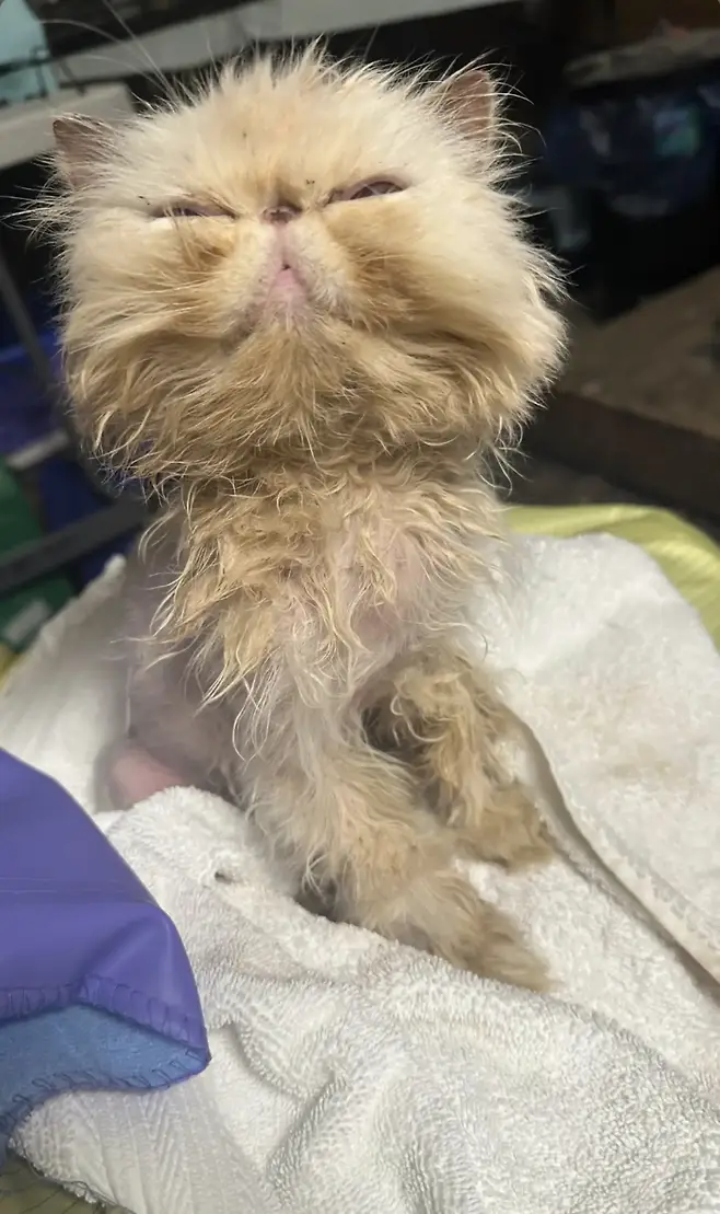 Little Cats Lost Society의 구조대는 그를 그들이 본 "가장 역겹고, 병들고, 우울한 작은 페르시아 고양이 중 하나"라고 묘사했습니다.