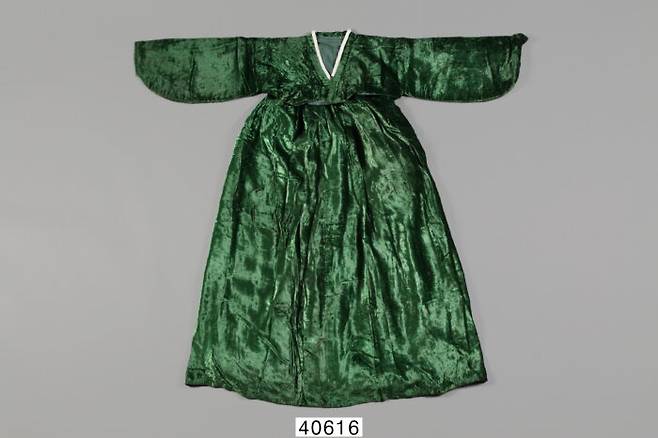 초록색 벨벳천으로 제작한 저고리와 치마