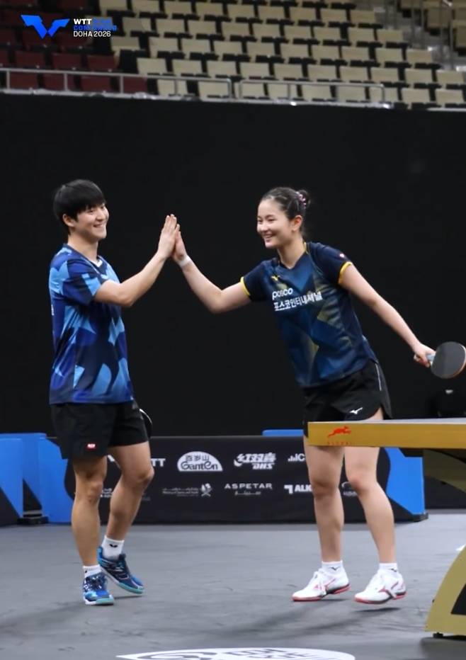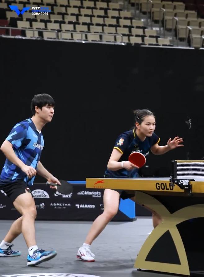 (엑스포츠뉴스 권동환 기자) 박강현(미래에셋증권)-김나영(포스코인터내셔널) 조가 '탁구 세계 최강' 중국을 꺾고 월드테이블테니스(WTT) 스타 컨텐더 도하 2026 결승에 올라갔다.