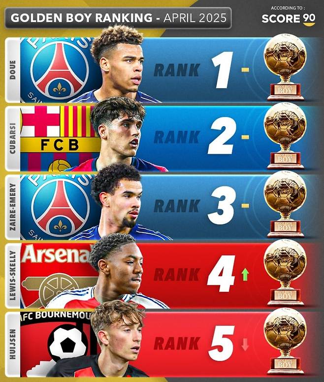 해당 시즌 가장 우수한 포텐과 경기력을 보여주고 성과를 낸 선수에게 수여하는 골든보이 역시 발롱도르만큼 관심을 모으는 상이다. 리오넬 메시, 웨인 루니, 킬리언 음바페, 엘링 홀란드, 라민 야말, 가비, 페드리, 주드 벨링엄 등 세계적인 축구 선수들이 유망주 시절 받았던 상으로 2025 시즌 골든보이 수상자 역시 관심을 모았다. 바르셀로나의 2007년생 수비수 파우 쿠바르시와 PSG 데지레 두에의 2파전이 예상됐지만 인테르와의 챔스 결승에서 두에가 활약하면서 사실상 골든보이 수상이 대단히 유력해졌다.