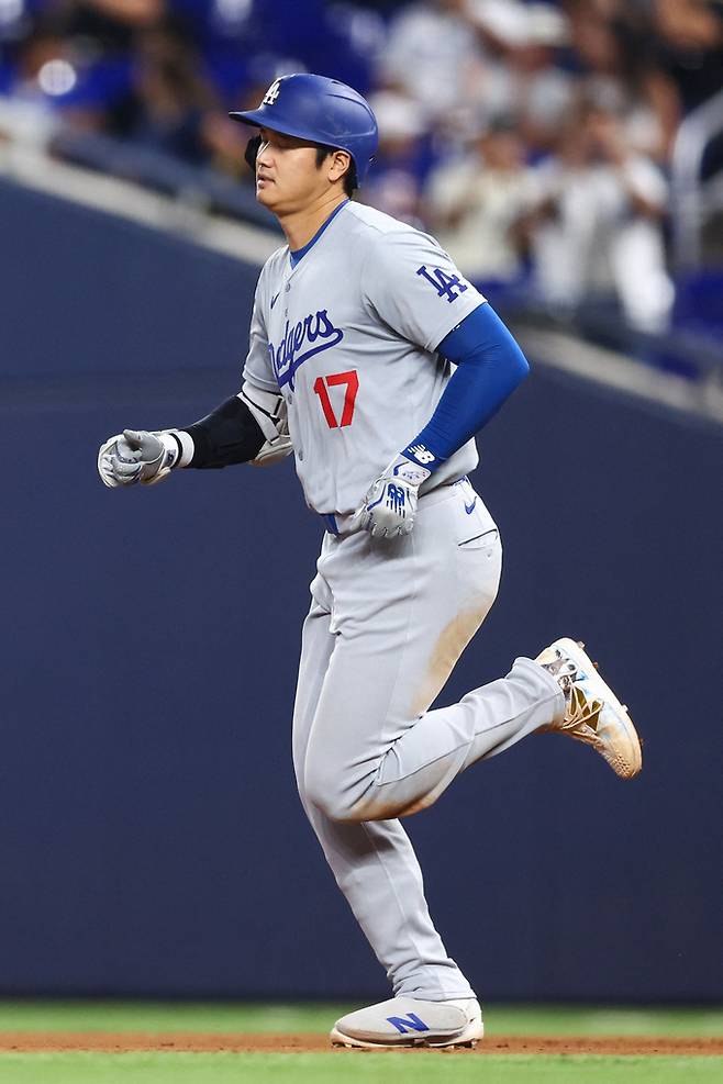 3회 세 번째 타석에서도 2타점 2루타를 터뜨리며 미친 타격감을 이어간 오타니는 6회 네 번째 타석에서 홈런포까지 터뜨렸다. 6회 1사 2루에서 마이애미 3번째 투수 호르헤 소리아노의 2구째 85.4마일(137.4km) 슬라이더를 제대로 걷어올려 투런포로 연결시켰다. 타구 속도는 무려 111.2마일(약 179km)에 달하는 총알 타구였다.