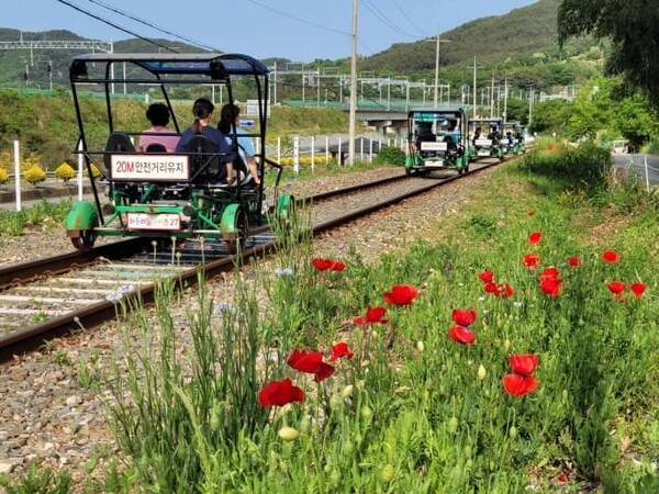 하동 북천 꽃양귀비 축제에서는 꽃밭 사이를 누비는 레일바이크가 큰 인기를 끌고 있어요. 북천역을 출발해 꽃길을 따라 달리는 레일바이크는 시골 간이역의 정취와 꽃밭의 낭만을 동시에 느낄 수 있는 이색 체험입니다. 매일 오전 9시 30분부터 오후 5시 30분까지 총 6회 운영되며, 가족이나 친구, 연인과 함께 꽃길을 달리며 봄의 정취를 만끽할 수 있습니다.