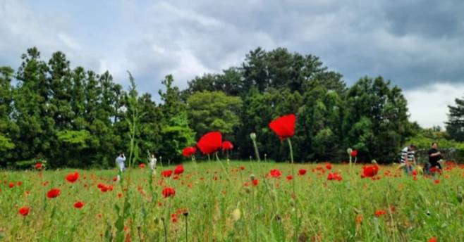 북천 들판을 붉게 수놓는 꽃양귀비의 장관