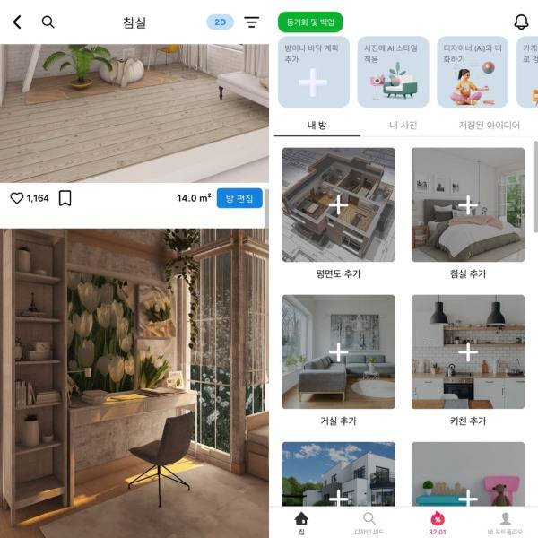 앱 ‘3D집꾸미기’ 역시 모바일로 간편하게 가상인테리어 서비스를 제공하고 있다.