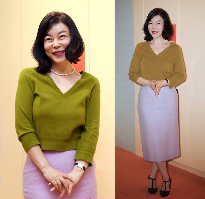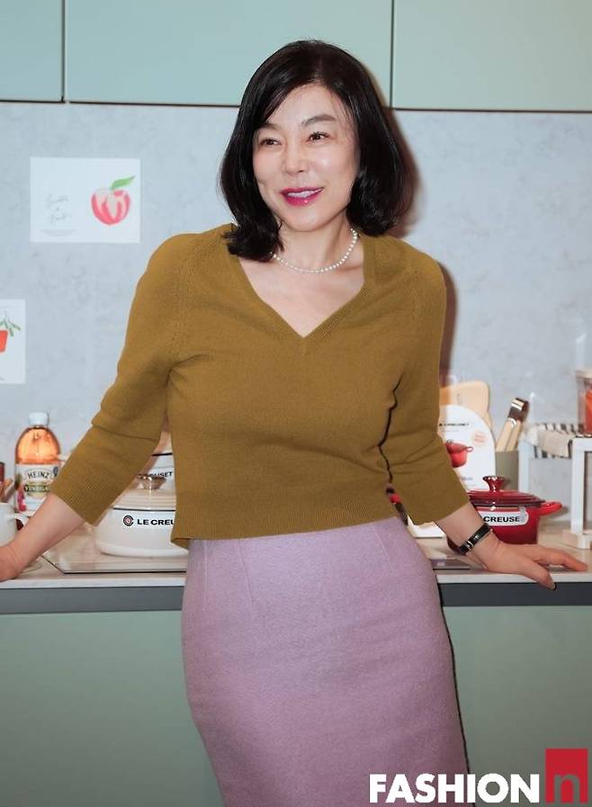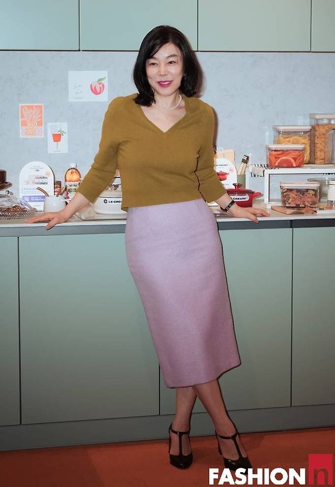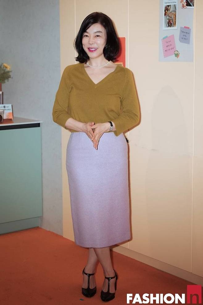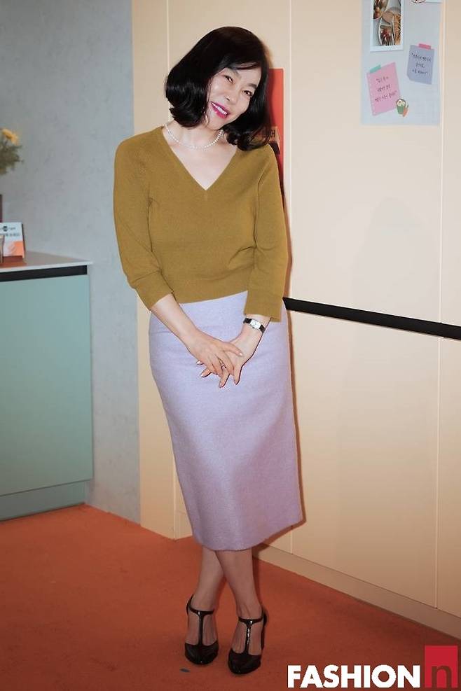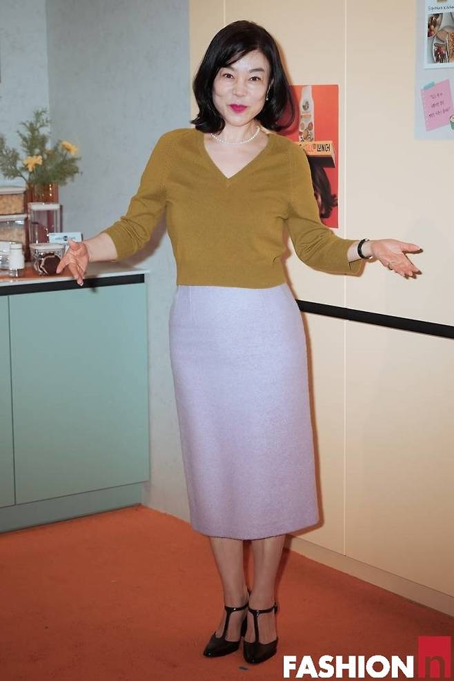 이날 최화정은 겨자 컬러의 브이넥 니트와 핑크 롱스커트를 매치한 러블리한 니트룩으로 설레는 봄날 패션을 연출했다.