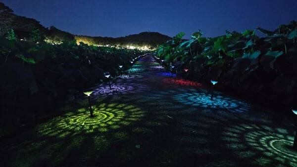 밤이 되면 축제장은 전혀 다른 분위기로 변신합니다. ‘연빛달빛야행’이라는 야간 프로그램이 대표적인데요, 해가 지면 연꽃 위로 LED 조명과 유등, 장미꽃 조명이 수면을 수놓으면서 환상적인 야경을 연출합니다.