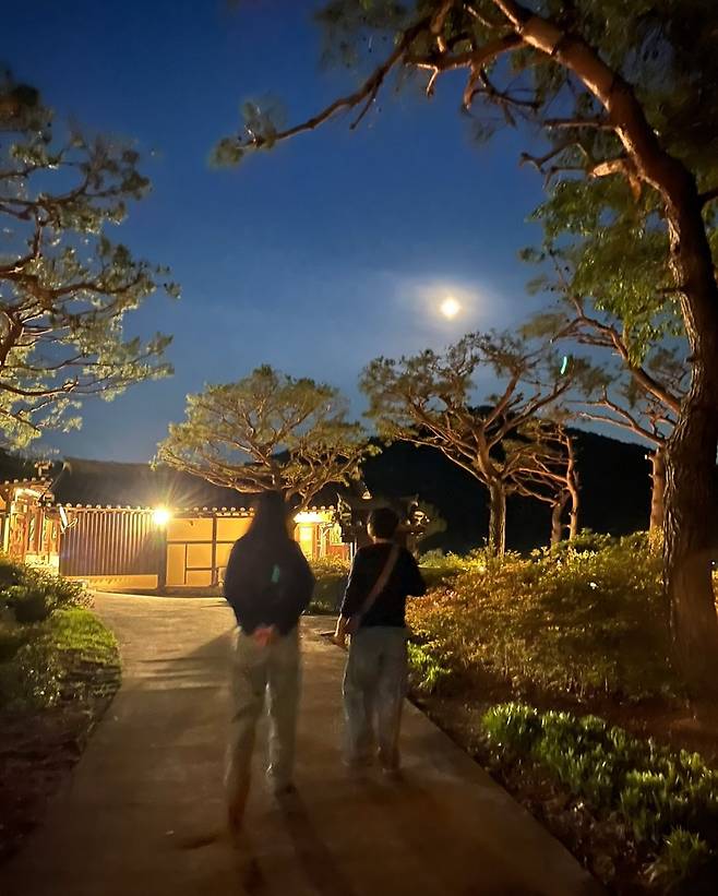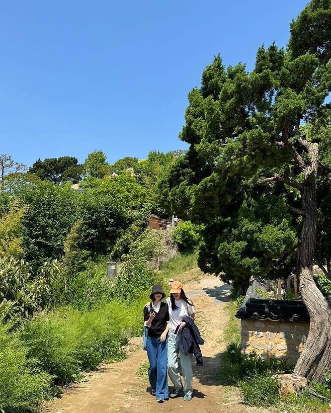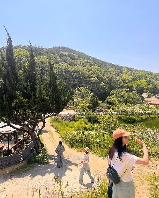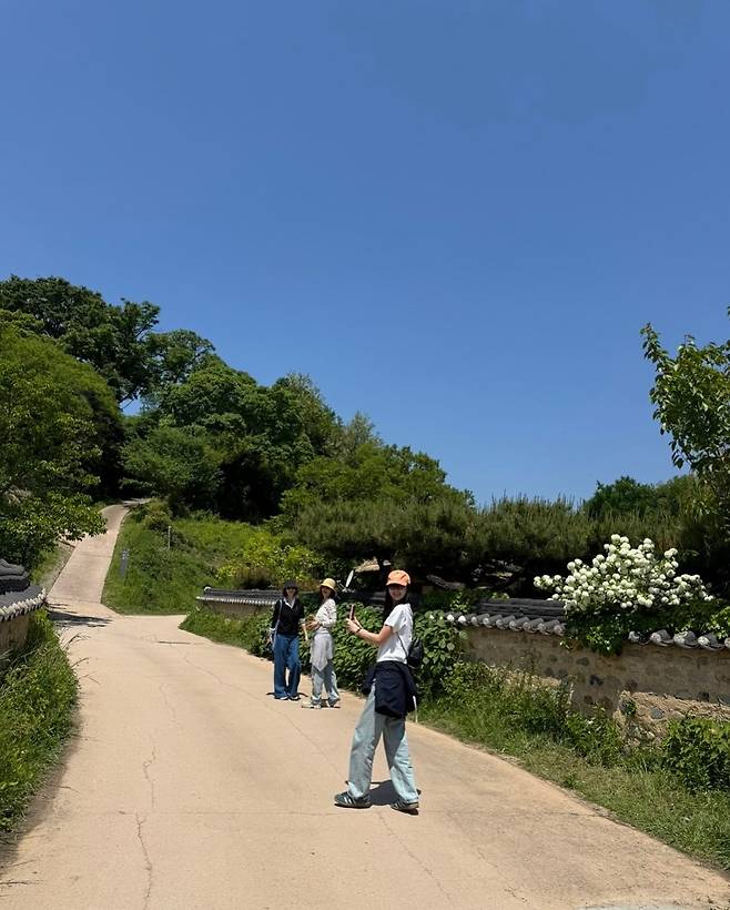 또 다른 컷에서는 버킷햇과 와이드 팬츠를 매치해 편안하면서도 멋스러운 산책룩을 완성해 팬들의 시선을 사로잡았습니다.