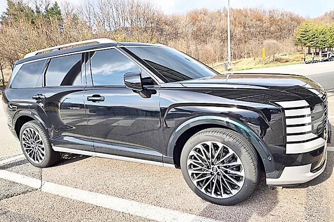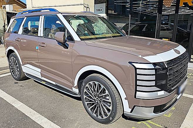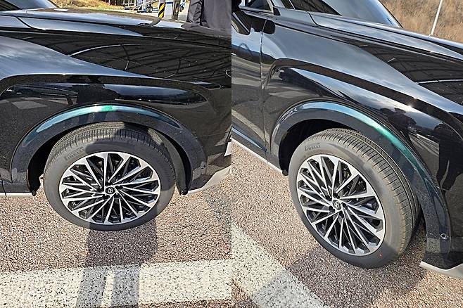 팰리세이드는 현재 어비스 블랙 펄, 크리미 화이트 펄, 쉬머링 실버 메탈릭, 로버스트 에메랄드 펄, 에코트로닉 그레이 펄, 캐스트 아이언 브라운 펄 등의 외장색이 판매되고 있다. 그런데 블랙 컬러로 두 달 넘게 탑승한 글쓴이는 보조석 측 펜더 부분만 에메랄드 펄이 들어간 부품이 탑재돼 있던 것이다.