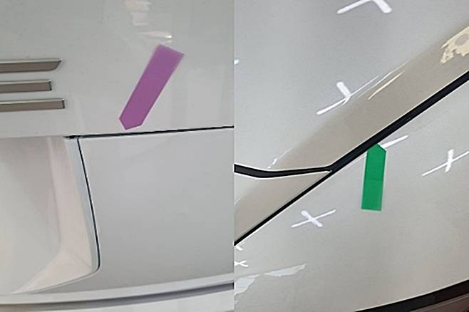 글쓴이는 해당 사진을 업로드하기 전날, 휴게소에서 차량이 어딘가 이상함을 감지했다. 가까이에서 보니 동승석 측 펜더 부분이 에메랄드빛이 돌고 있던 것이었다. "차량을 출고한 지 두 달이 지났는데 이제야 알았다"라며 결함인지 조립 불량인지 이 상황이 그저 황당하다고 덧붙였다.