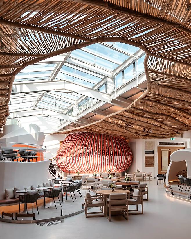 ‘자투라(Zatura)’는 ‘휴식에 몰입해 행복하고 몽환적인 시간을 보낼 수 있는 공간’을 의미하는 가상의 단어입니다. 그 이름처럼, 마치 휴양지에 온 듯한 감각적인 목재 인테리어가 방문객을 맞이합니다. 아즈텍 문명 조각상과 아즈텍 모티브의 조각문 등 세심한 인테리어 디테일까지 놓치지 않았는데요. 특히 ‘클램 하우스(CLAM HOUSE)’나 ‘케이브 하우스(CAVE HOUSE)’라 불리는 독립된 룸 형태의 공간을 대여할 수 있어 단체 이용에도 적합합니다. 한쪽에는 다트, 볼링 등 다양한 놀이 공간이 마련돼 있어 아이들과 함께 방문하기에도 좋은 카페입니다.
