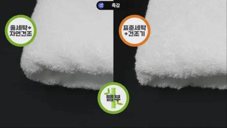 제품 간 부드러움 차이와 별개로 같은 수건을 자연건조했을 때와 건조기를 사용했을 때 촉감 차이가 컸는데요.