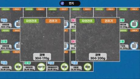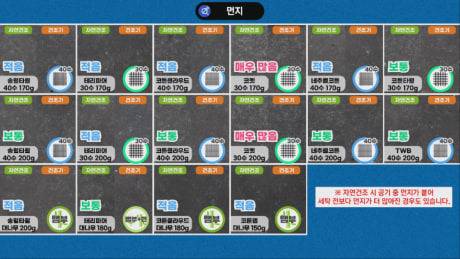 모든 제품이 자연건조 시보다 건조기 사용 시 먼지가 확실히 적었는데, 전반적으로 뱀부 제품과, 면 중에서는 30수 제품 또는 저중쟝 제품이 먼지가 적었습니다.