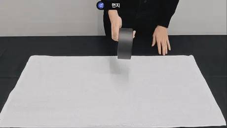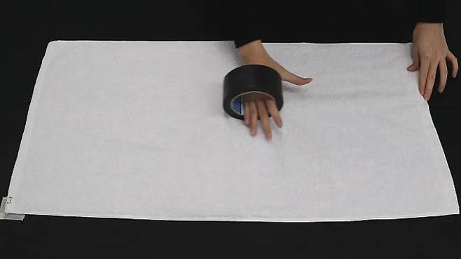 먼지가 많이 나오는 수건은 사용하기 불편하기도 한데요. 3회 세탁 및 건조 후 테이프로 수건을 쓸어보면서 먼지가 얼마나 묻어나는지 비교해 보았습니다.