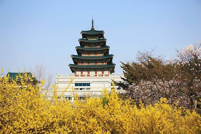 북촌과 경복궁 사이, 고즈넉한 분위기 속에 자리한 국립민속박물관도 개나리 명소로 숨겨진 매력을 지닌 곳이다.