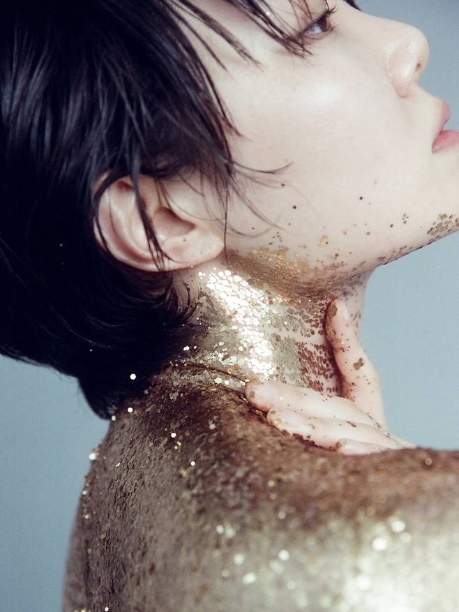 공개된 사진 속 손수아는 상반신에 금색 글리터를 입힌 채 몽환적이면서도 강렬한 분위기를 연출했다.