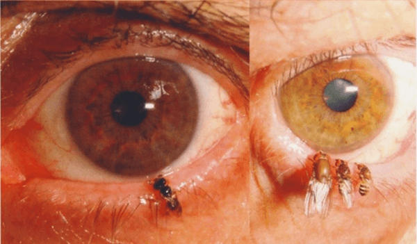 일반 초파리 말고 눈앞에서 얼쩡대는 것을 좋아하는 ‘눈초파리’를 아시나요? 눈초파리는 이름처럼 사람이나 동물의 ‘눈물’을 섭식하는 특성을 가지고 있습니다. 눈물에서 단백질이나 나트륨 이온을 섭취하기 위한 것으로 추정되는데, 눈초파리가 눈에 들어가면 파리가 죽으면서 내부에 있던 기생충이 나와 눈에서 기생할 수 있습니다, 이에 따라 결막염이나 궤양, 심하면 시각 장애를 겪을 수 있어 주의해야 합니다.