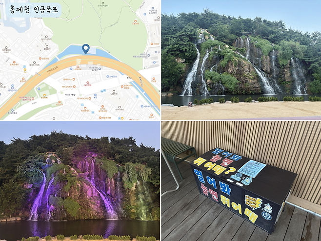 홍제천 인공폭포 앞에는 넓은 주차장이 마련돼 있어 차량을 이용한 접근성도 뛰어나다. 여름철이면 시원한 물줄기를 감상하며 한적한 휴식을 취하는 시민들로 북적거린다. 평일 저녁에도 각종 좌석에 앉아 가족과 함께 휴식을 즐기거나 음식을 나눠 먹는 풍경을 쉽게 볼 수 있다.