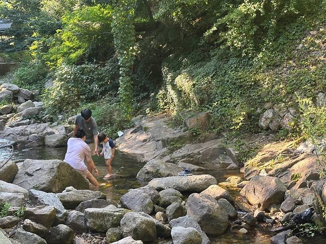 우이동 계곡의 매력은 별다른 장비가 없더라도 시원한 계곡물과 넓은 바위 지대를 즐기며 누릴 수 있다는 점. 어디서든 발을 담그고 책을 읽거나, 아이와 함께 물놀이를 즐기는 풍경이 일상적이다. 3살 아이와 함께 방문한 정경호(40)·변지아(40) 부부는 “멀리 가지 않아도 가족과 즐거운 여름을 보낼 수 있는 좋은 곳”이라며 만족감을 전했다.