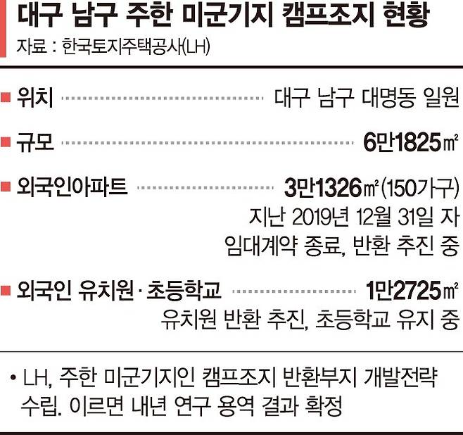 한국토지주택공사(LH)가 40여 년 만에 반환을 추진 중인 주한 미군기지 '대구 캠프조지 외국인 아파트 반환 부지'에 대한 개발 전략 수립에 나섰다.