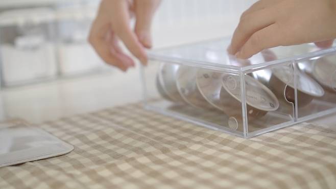 저는 버츄오 머신을 사용하고 있어서 한 칸에 4개씩 들어가는데 일반 캡슐은 더 많이 수납 가능할 것 같아요.