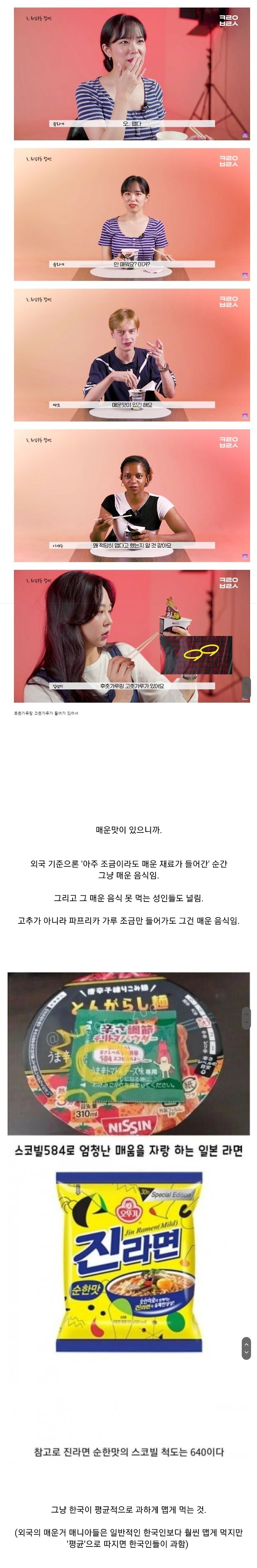 외국인들은 실제 튀김우동 컵라면을 먹고 맵다고 느낀다네요