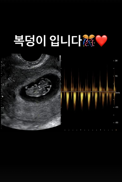 공개된 사진 속에는 고우리가 임신한 아이의 초음파 사진이 담겨있다. 그는 하트 이모지를 덧붙이며 기쁜 마음을 드러냈다.