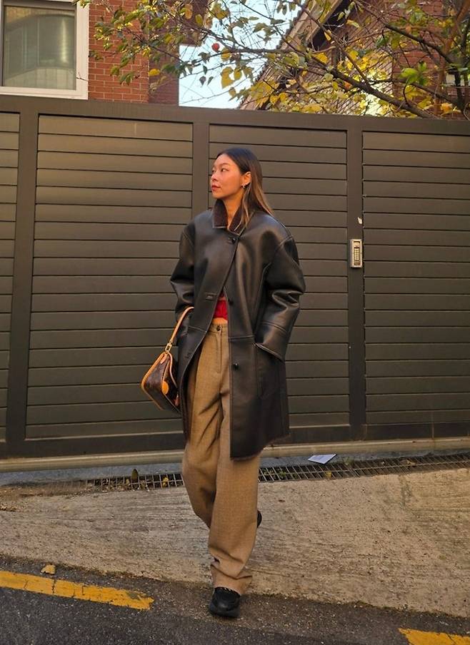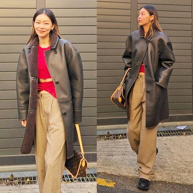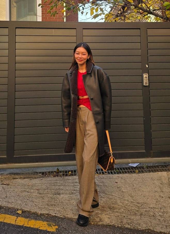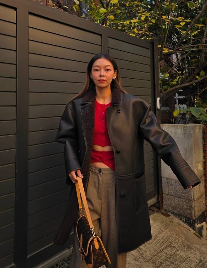 공개한 사진에서 송해나는 레드 컬러의 컷아웃 니트 카디건 톱에 무스탕 코트를 걸친 외출룩으로 찬바람도 문제없은 핫한 스타일을 완성했다.