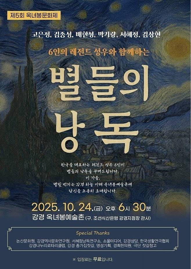 참여 성우들은 책장을 넘기듯 흐르는 목소리와 가을 저녁의 온도와 닮은 말들을 무대 위에 놓으며, 단순한 글 읽기를 넘어선 삶의 기억을 건네고, 서로의 마음을 잇는 오래된 예술이자 대화를 선사한다. 특히, 우리가 잊고 있던 말들, 스쳐 지나간 표정들이 성우들의 목소리를 만나 다시 숨을 쉬게 하는 경이로운 경험을 청중들에게 제공한다.