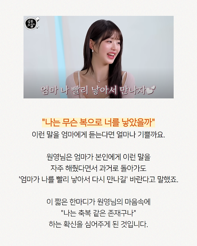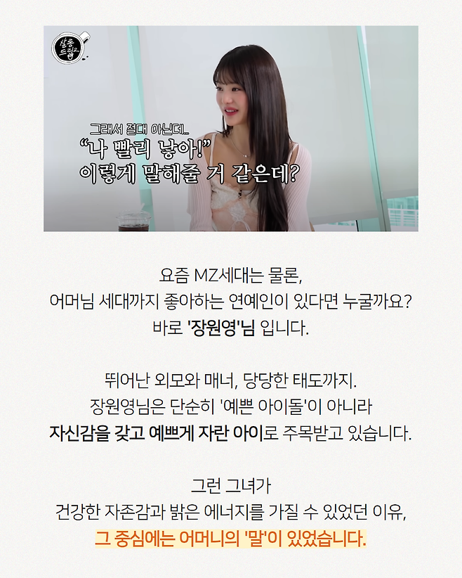 장원영 어머니가 딸에게 가장 많이 해줬다는 '이 말'
