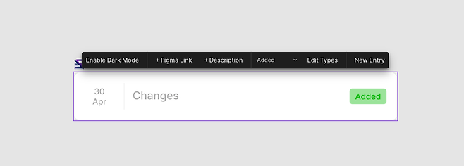 오늘 처음으로 소개할 피그마 - 협업 관련 기능은 ‘Changelog(체인지 로그)’예요. Changelog는 변경사항에 대한 기록을 의미하는데요. 피그마를 통해 만든 화면은 리뷰 등을 거치며 변경될 수밖에 없는데, 이런 내용을 모두가 쉽고 빠르게 확인하는데 도움을 받을 수 있어요. 프레임 링크를 삽입, 추가 설명 작성, 변경사항이 새로 추가된 것인지, 변경된 것인지 등을 라벨 형태로 적용하는 것도 가능해요.