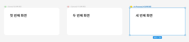 선택한 상태는 타이틀을 유지하면서, 맨 앞에 적용되는데요. ‘첫 번째 화면’이라는 타이틀에 ‘완료’ 상태를 추가하면 ‘{🟢 › Done} 첫 번째 화면’과 같이 적용되는 것을 확인할 수 있어요. 디자인 작업을 하다 보면 이번 배포에 모두 포함된다 하더라도 리뷰 등에 따라 특정 화면은 수정을 하는 등 작업 상태가 다를 수 있는데요. 이럴 때 플러그인을 활용해 팀원들에게 현재 상태를 명확하게 보여주는데 도움이 될 수 있는 역할을 할 수 있다고 생각해요.