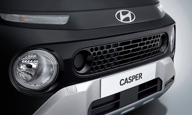 상품성 개선 모델, 더 뉴 캐스퍼는 기존 모델의 개성은 이어가되 안팎으로 조금씩 바꾸고 안전 및 편의 사양을 채워 넣은 것이 특징이랍니다. 일단 생김새부터. 전면 블랙 하이그로시 라디에이터 그릴의 좌우에 자리 잡은 LED 프로젝션 헤드 램프는 기존 모델과의 큰 차이입니다.