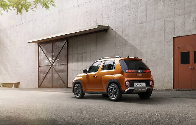 후면의 리어 램프도 새롭게 디자인되었고 17인치 알로이 휠도 이전과는 다른 모습입니다. 참고로 더 뉴 캐스퍼는 기존보다 약 6% 개선된 공력 계수를 달성했다는데, 라디에이터 그릴 부분 공력 설계와 차체를 둘러싼 공기 흐름을 최적화하는 휠 디자인 덕분이라고 합니다.