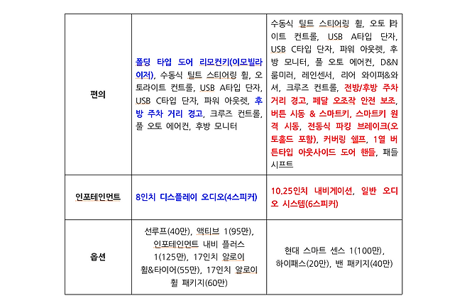 내연기관이든 전기차든 채울 것 다 채워서 만족하면서 타는 게 나중에 후회가 없지 않을까 생각합니다. 2년 타고 차 바꿀 거 아니면요. 물론 경차나 소형차에 이렇게 돈 내야 되나 싶기도 한데요. 그래도 뭐 어쩌겠어요. 귀여워 보이면 답도 없다는데.