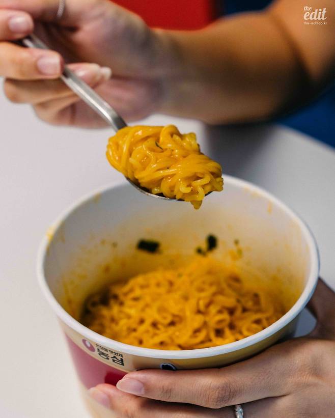요즘 컵라면을 살 때 꼭 확인하는 게 있다. 바로 전자레인지 조리 가능 여부. 온수를 붓고 전자레인지에 돌리면 면발이 투명하게 익으면서 더 쫄깃해지기 때문이다. 뜨거운 물만 부어 서서히 익혔을 때와는 면발의 탱글함이 다르다. 소스도 훨씬 잘 배어든다.