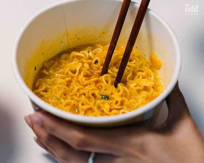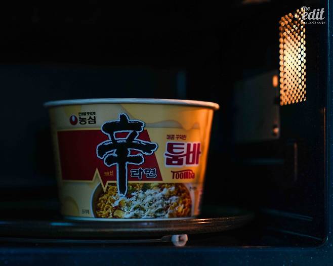 요즘 컵라면을 살 때 꼭 확인하는 게 있다. 바로 전자레인지 조리 가능 여부. 온수를 붓고 전자레인지에 돌리면 면발이 투명하게 익으면서 더 쫄깃해지기 때문이다. 뜨거운 물만 부어 서서히 익혔을 때와는 면발의 탱글함이 다르다. 소스도 훨씬 잘 배어든다.