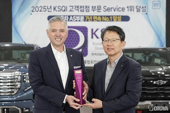 제너럴 모터스(General Motors, 이하 GM) 한국사업장이 한국능률협회컨설팅(KMAC)이 주관하는 '2025 한국산업 서비스품질지수(KSQI)' 고객접점 조사에서 자동차 A/S 부문 7년 연속 1위에 오르며, 우수한 고객 서비스 품질과 역량을 다시 한번 입증했다.